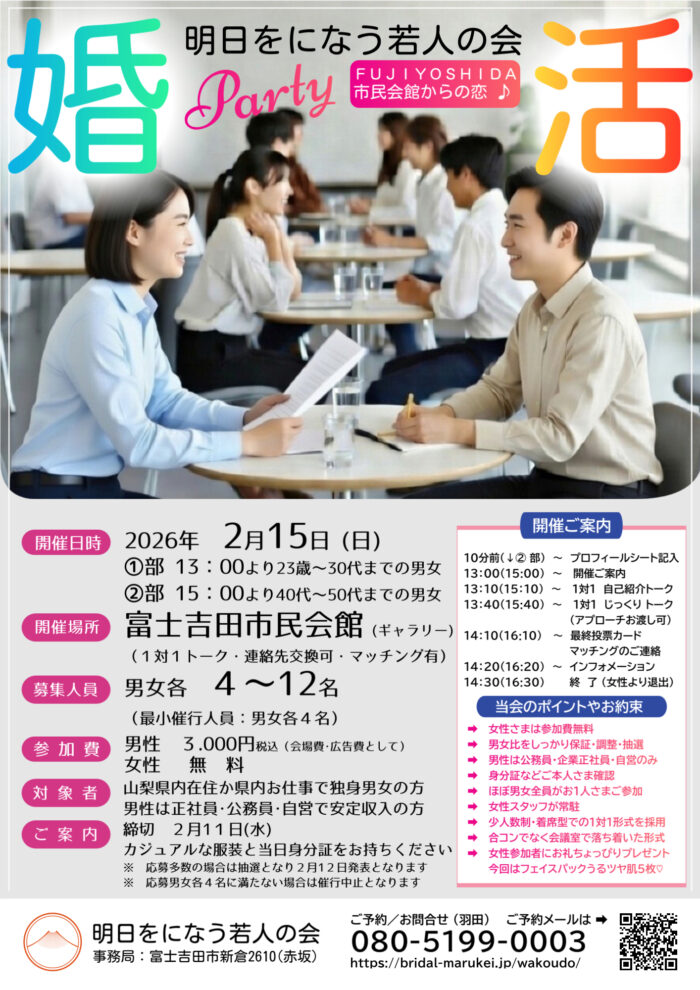 富士吉田市制祭協賛明日を担う若人の会婚活パーティー
